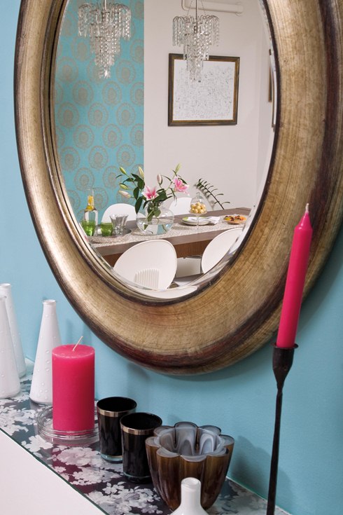 A mostani akció előtti éjszaka pl. hirtelen felindulásból türkizre mázoltam a kandalló addigi visszafogott hatású bézs falát, az eredmény (legalábbis a szín) mindenkinek tetszett. Ha egyszer stílusváltás lesz és megválok a kedvenc türkiz Casamance tapétától, majd a fenti falszakasz is alkalmazkodik ehhez, addig viszont nagyon szeretem, hogy rímelnek egymásra.